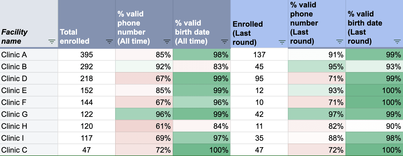 Record quality improved significantly: the proportion of children with a phone number associated with their name was 48% in the first month vs 78% in the final month—getting close to a natural ‘cap’ based on phone ownership rates.