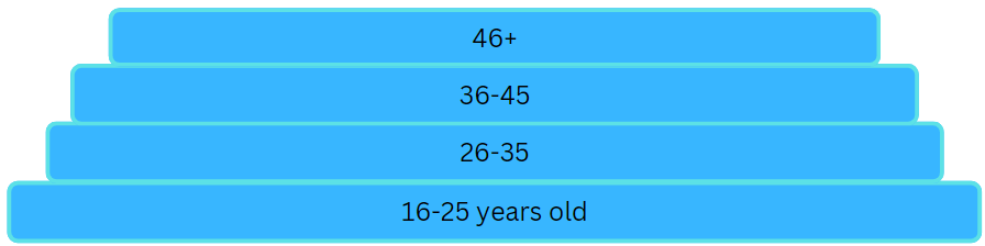 Version 1 shows the actual distribution using the same categories you used. As you can see, it shows the EA community isn’t actually very heavily skewed towards 16-25 year olds. In fact, there are more 26-35 year olds.