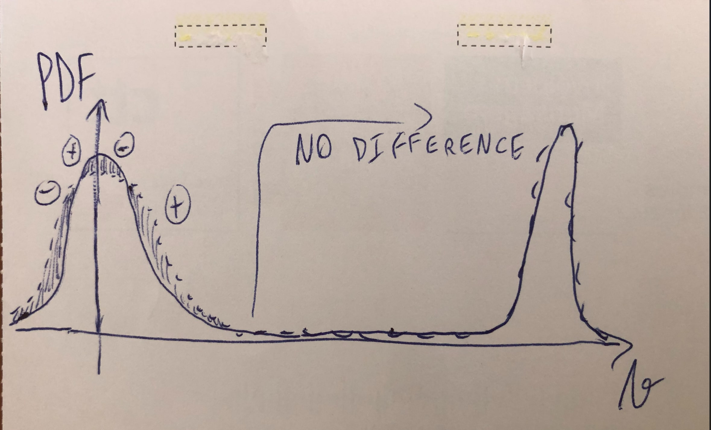 The area under each curve should be the same (although it is not in my drawing), and equal to 1. In addition, âword + interventionâ was supposed to be âworld + interventionâ.