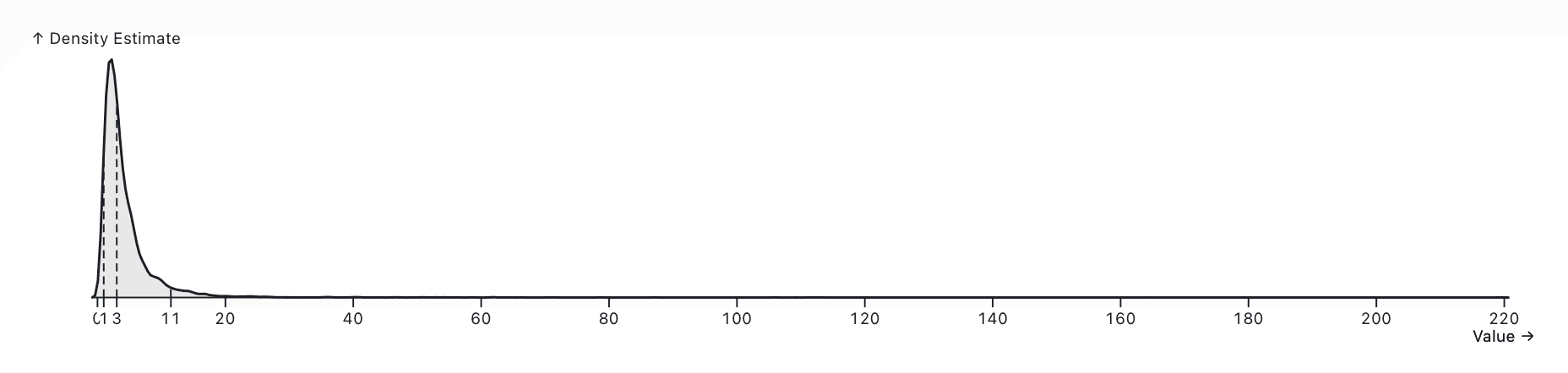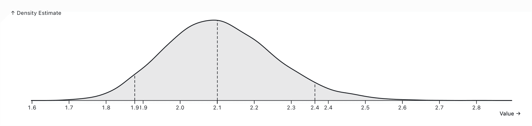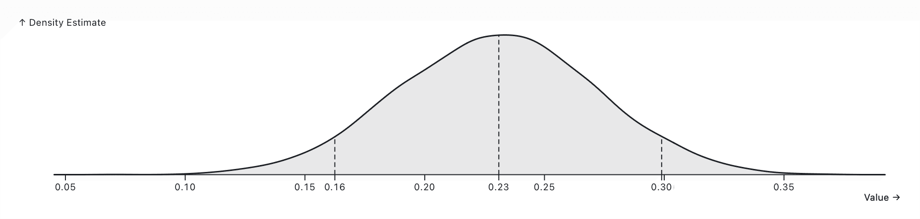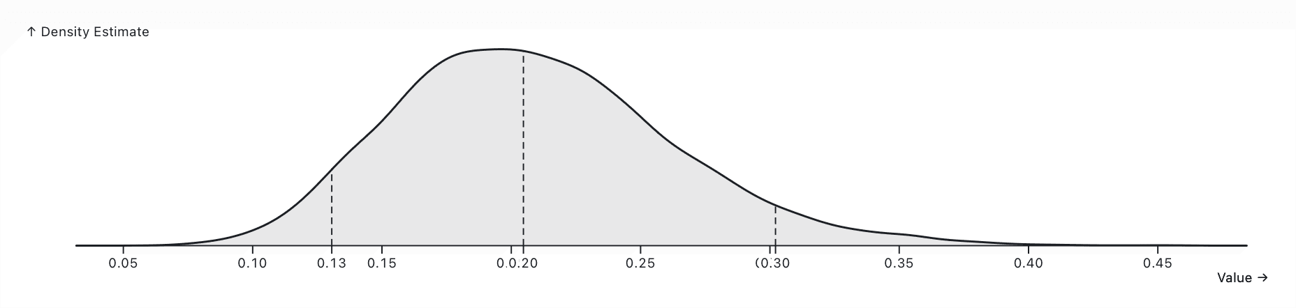 | FWIW, I’ll display charts of some of my estimated distributions for each parameter with their code. This makes more sense in the original Observable notebook, but I hope they’re also generally clear here. |
