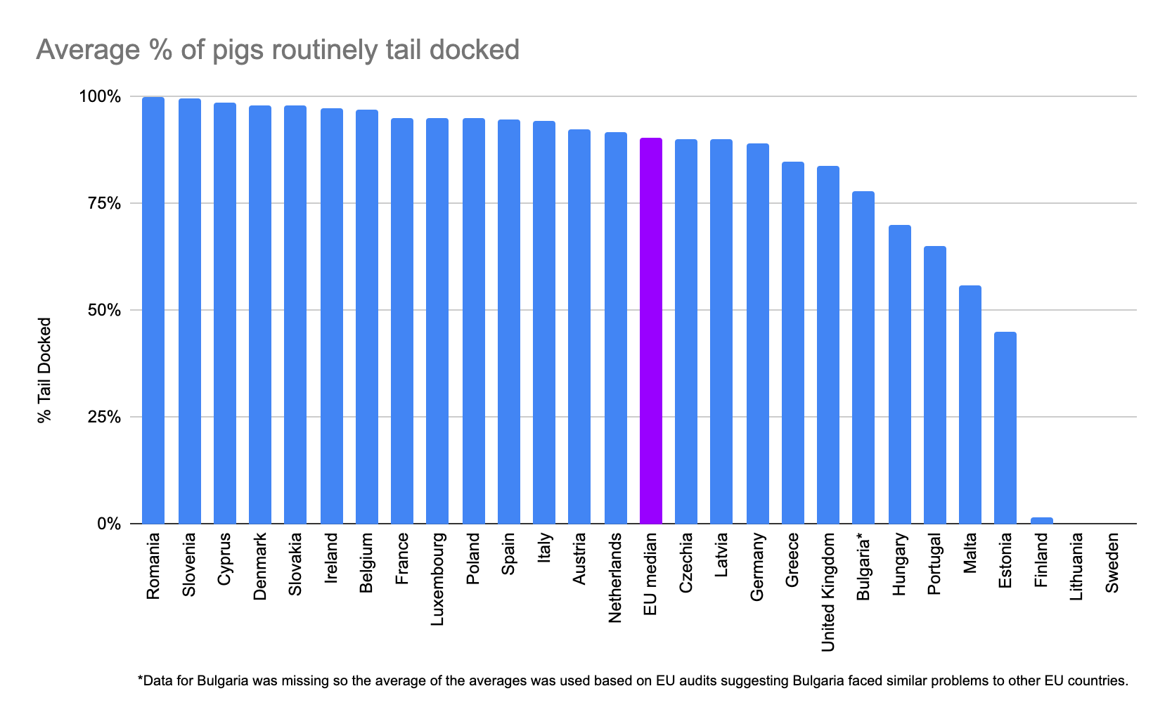 ~52 million to ~116 million pigs (35%-86% of EU total) on average are being tail docked without the required alternative methods for reducing tail biting being implemented.