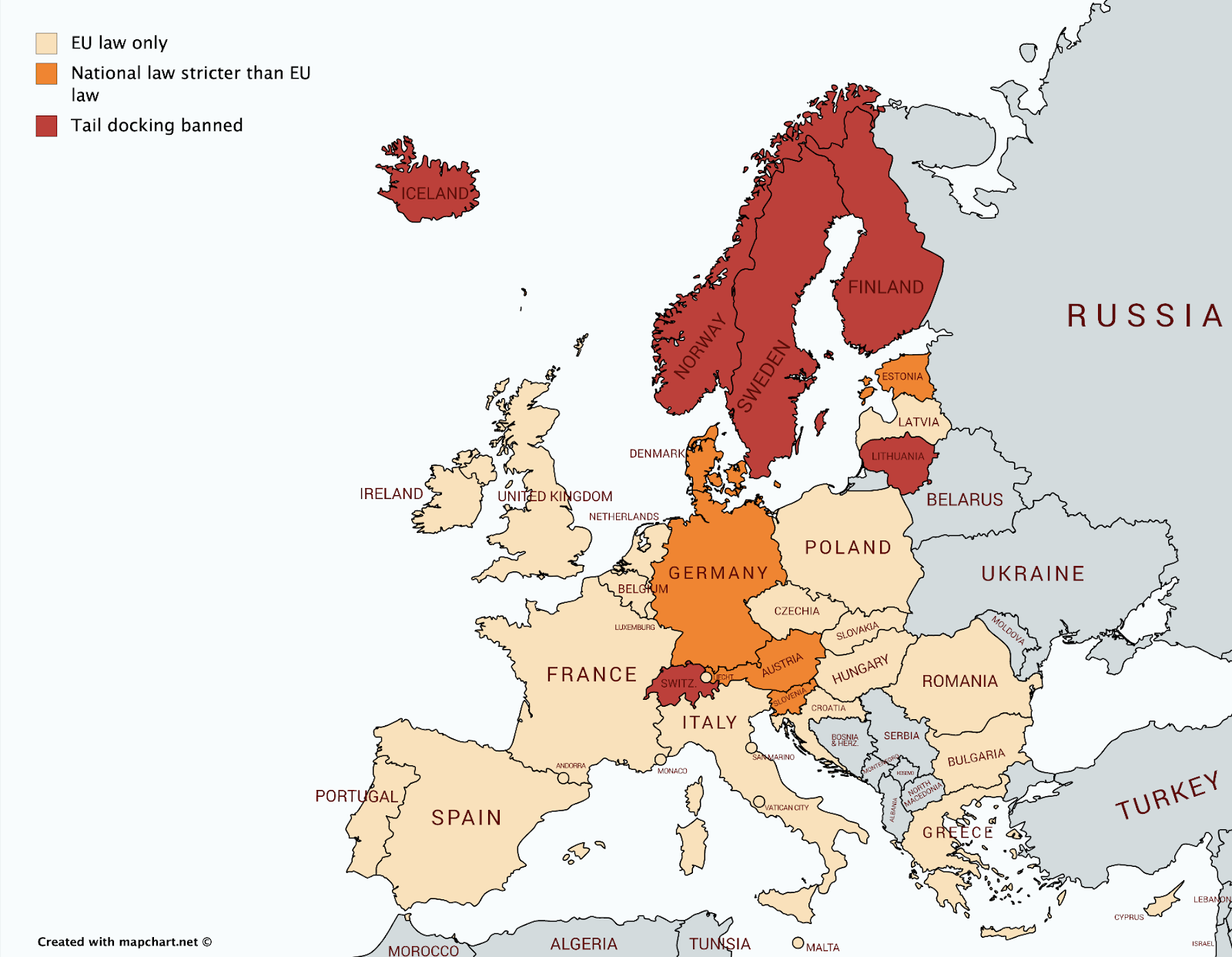 Enacting national laws in countries with high public concern for animal welfare may be an effective first step to ensure later equivalent EU level laws are complied with in other EU countries.