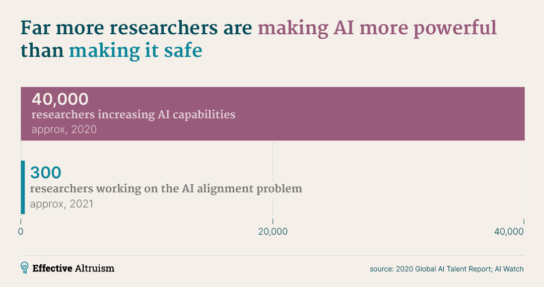 Benché questo problema abbia il potenziale per diventare di importanza epocale, solo qualche centinaio di ricercatori ci sta attualmente lavorando, rispetto alle decine di migliaia che lavorano per rendere più potenti le intelligenze artificiali.[16]