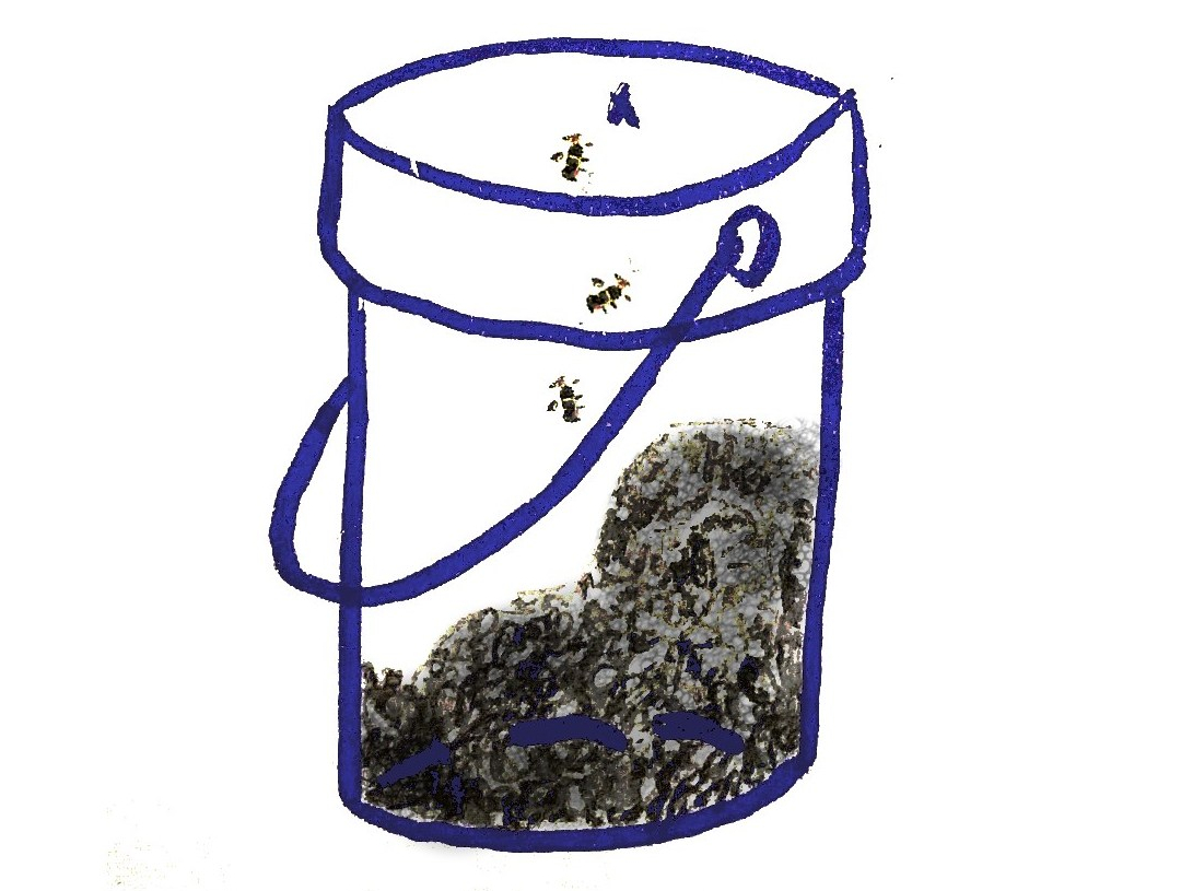 A bucket. Two pounds of ants.