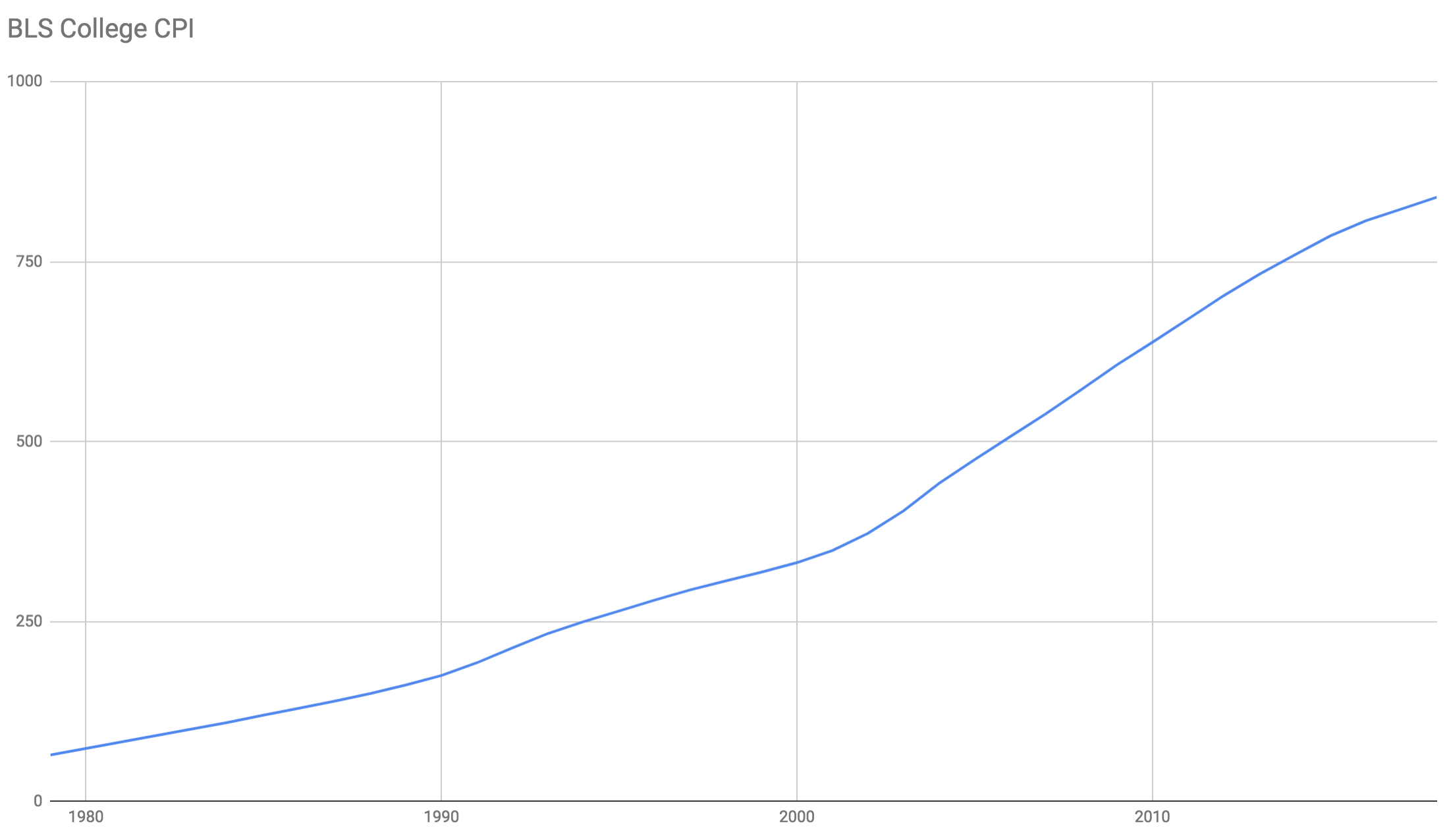 This was much less of an increase than I was expecting to find! If you look for a cost of college graph you often find things like: