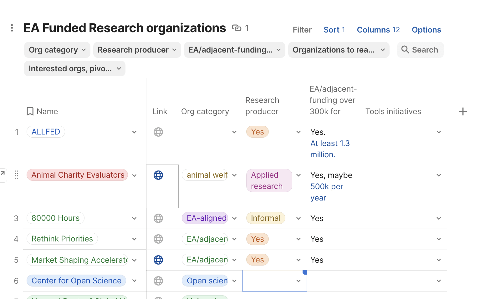That’s helpful as some of these are relevant. (But I’m looking for a list of ‘orgs funded to do research’.)