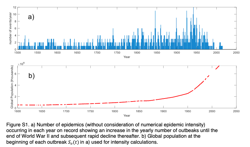 Thanks for posting, this paper was very helpful a while ago in guiding my initial forecasts on future pandemics. If anyone, like me, was wondering why they started at 1600, I believe it was the earliest they could go while retaining good quality data on population size (in order to estimate relative pandemic magnitude).