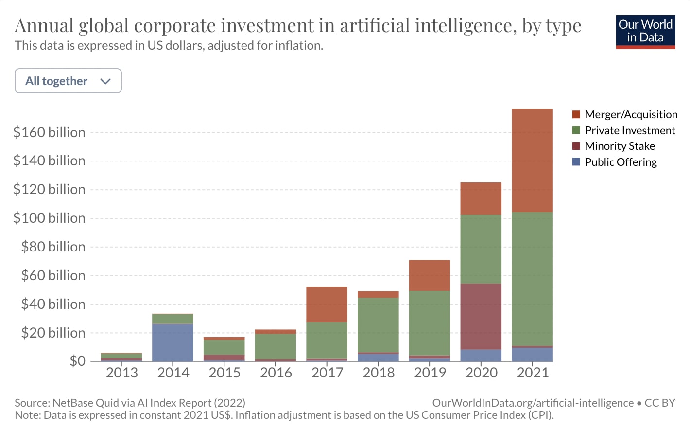 Of course, machines still do not perform this work wholly independently (even as many manufacturing systems are now practically fully automated). But this is a symmetric point, in that humans by no means perform the work independently either. Both humans and machines are necessary nodes in the network of tools that drive technological growth. And the core point on which Model 1 and Model 2 disagree is how large of a node — i.e. how large of a contributor and bottleneck — humans are compared to other nodes in this network. In 2020, Model 2 sees humans as a considerably more modest node in this network compared to Model 1 (even if Model 2 may still see humans as the single most significant node).