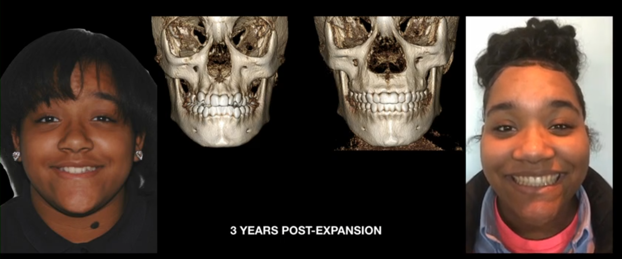 The second problem is that it results in a smaller nasal airway. Look at the difference in nasal airway size for this woman, who had her upper jaw expanded three times:
