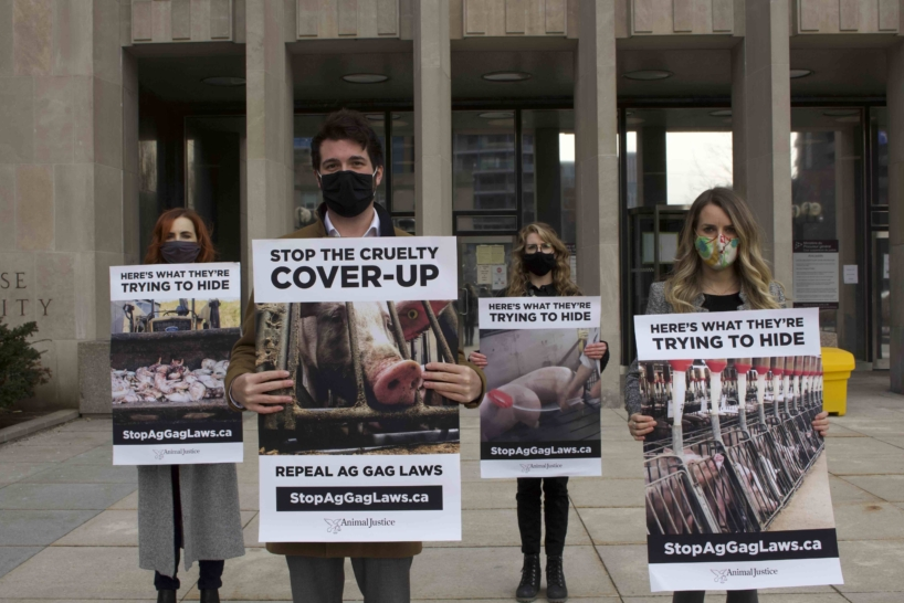 Animal Justice advocates for animals through a variety of approaches, including lobbying and advocating for animal protection laws, filing lawsuits, and leveraging media to obtain exposure and educate the general public. Animal Justice utilized their Movement Grant to fight back against recently introduced ag-gag laws in Canada. These anti-whistleblower laws can make undercover investigation and reporting of the conditions on Canadian farms very challenging. Animal Justice has reported that the first legal case challenging Canadian ag-gag law has been filed. The case was filed in the province of Ontario, on the grounds that it is unconstitutional to outlaw hidden-camera exposés exposing animal suffering at farms and slaughterhouses. Being able to show the true conditions behind the closed doors of factory farms is an important element in influencing social and legal change, and laws aimed at covering up cruelty have the potential to undermine long-standing advocacy efforts.