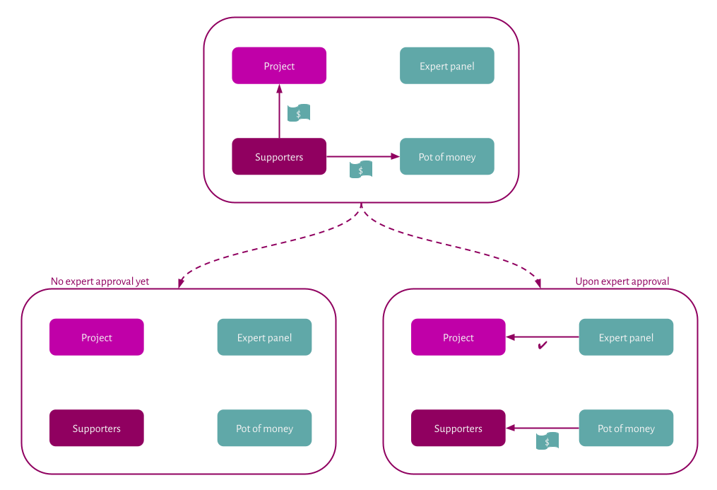 The core of the system should, in our opinion, not depend on any additional retroactive funders because (1) they may not be interested in the market until they see it work; (2) their funding is finite and independent of the impact market; and (3) they may not have enough in-house experts so that they want to defer to our jury anyway, effectively adding to the pot.