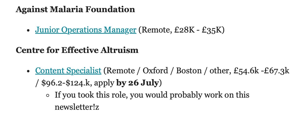 I saw a CEA role advertised for twice the salary of an AMF job, whereas they do not seem to differ dramatically in expected level of expertise / experience. Even if one believes they can make more impact at AMF, they would have to give up 20k pounds in salary to pass on the content specialist role. We learned recently to consider earning less, but this may still be quite the conundrum. What do you think?