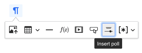 When you are drafting a post, select some text. An editor toolbar will appear, with the option to insert a poll. Click the button.