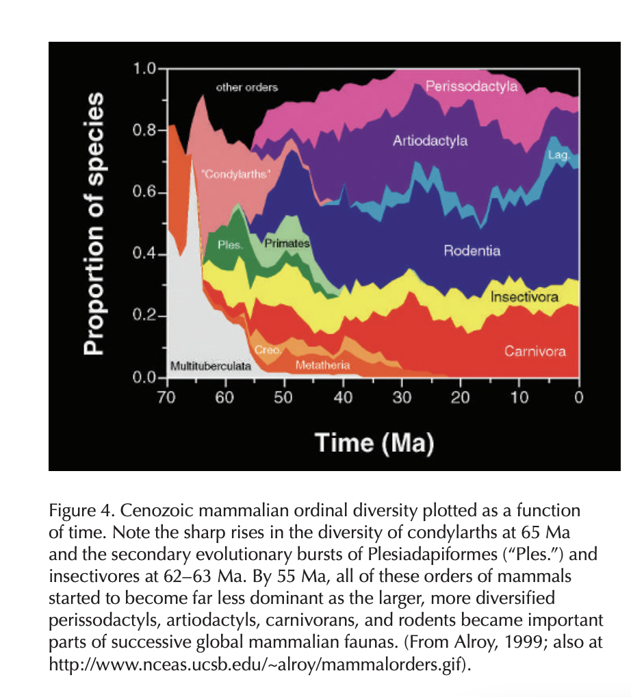For example, there was a sharp increase in ordinal diversity from the start of the Eocene: