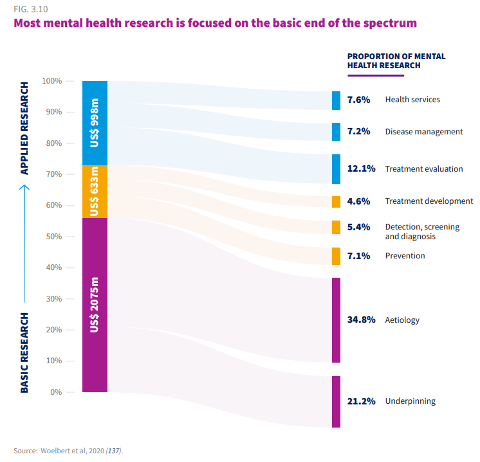 Figure 3. Only 5.4% of mental health research budget is spent on detection, screening and diagnosis.