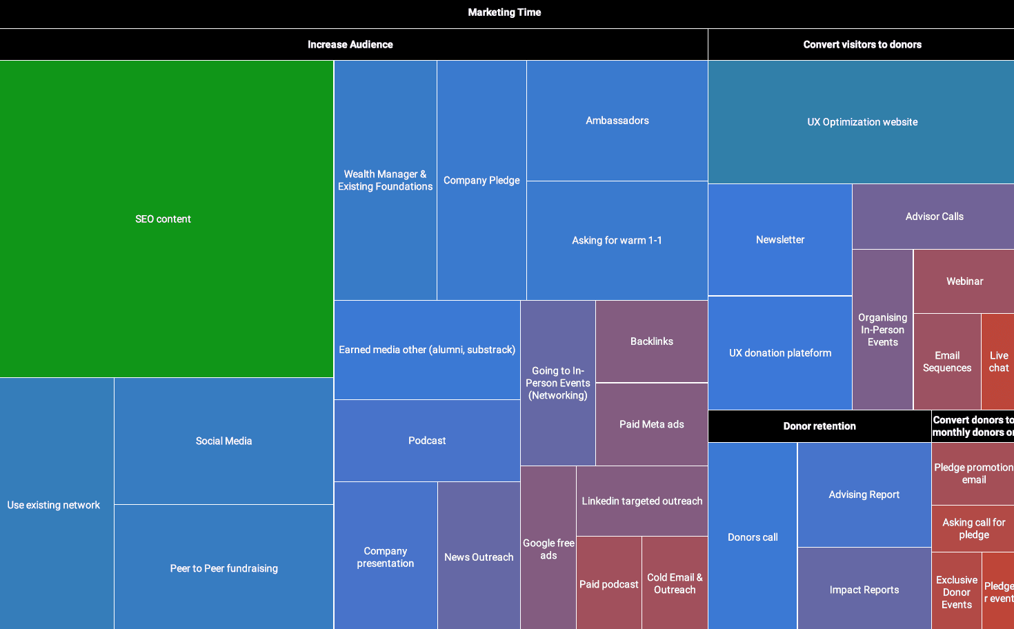 It’s not always easy to know what works: An effective giving initiative is relatively straightforward in terms of evaluating overall impact, but assessing the impact of each individual action is challenging. Many of the things we do don’t show immediate results. Typically, people need multiple touchpoints before donating, so we need to take many actions and be present across different channels. New donations often arise from people who are unclear about what they’ve heard, and even what motivates them to talk about us to others is a complex process.