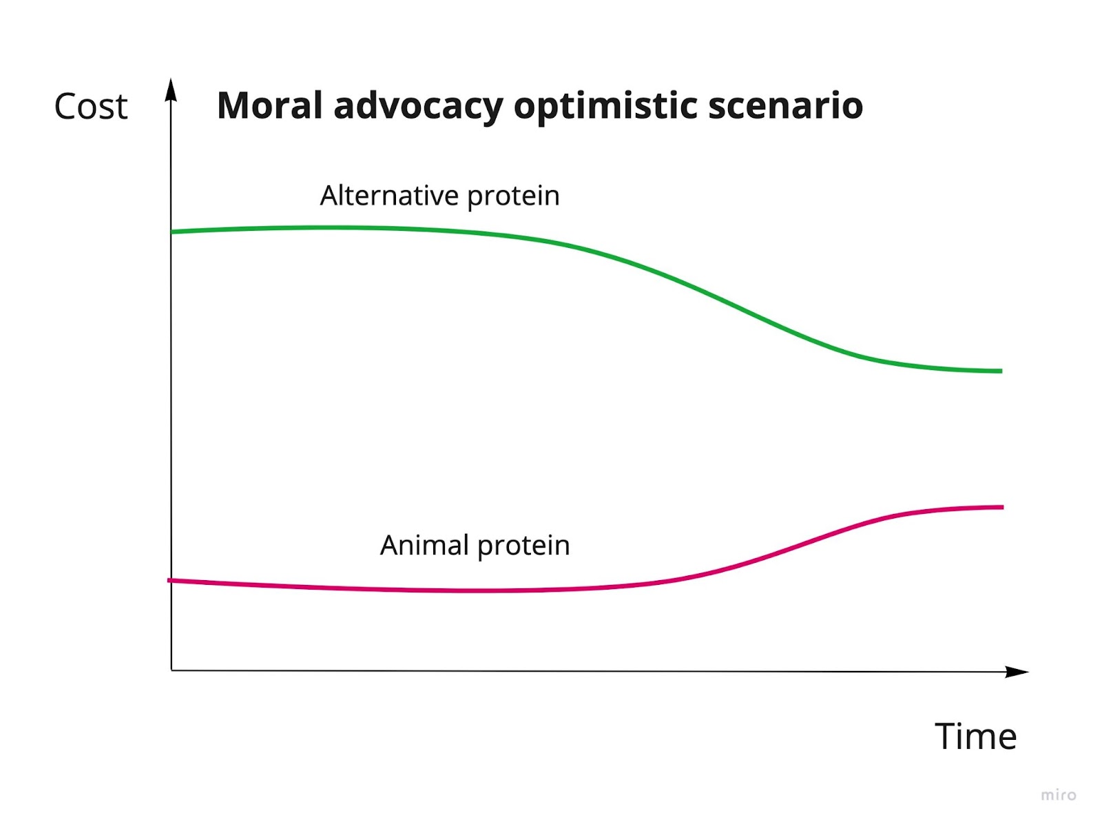 I haven’t mapped out the scenarios for significant welfare wins or moral advocacy success with alternative protein success as I believe alternative protein success will single handedly outperform any benefits provided by the other approaches. In this case I’m defining alternative protein success as alternative proteins are cheaper than the cheapest animal products, similar in taste and widely available.