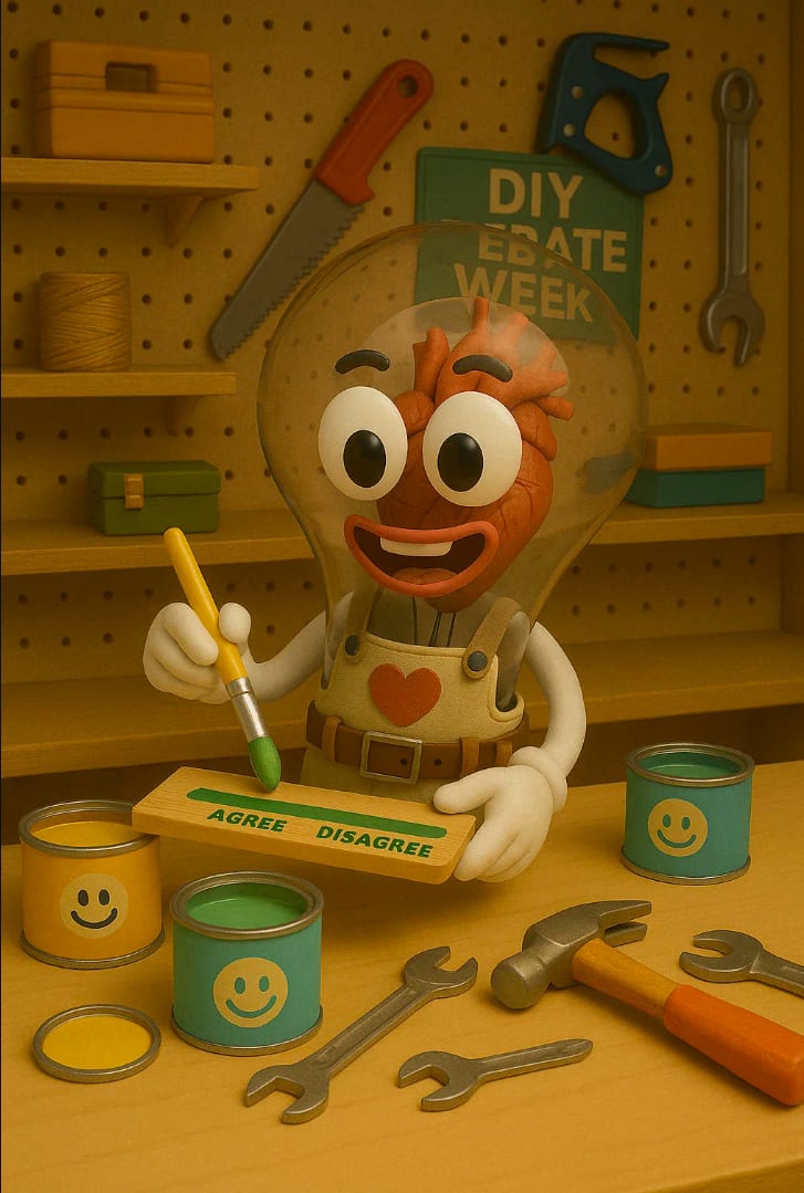 At the very least, the discussion should be had, and todays debate week seems like a good time to have it. And conveniently enough, it also provides a good example of the AI art usage I’m trying to gently discourage here: the announcement thread for DIY debate week has it’s own cute AI art tacked to the end: