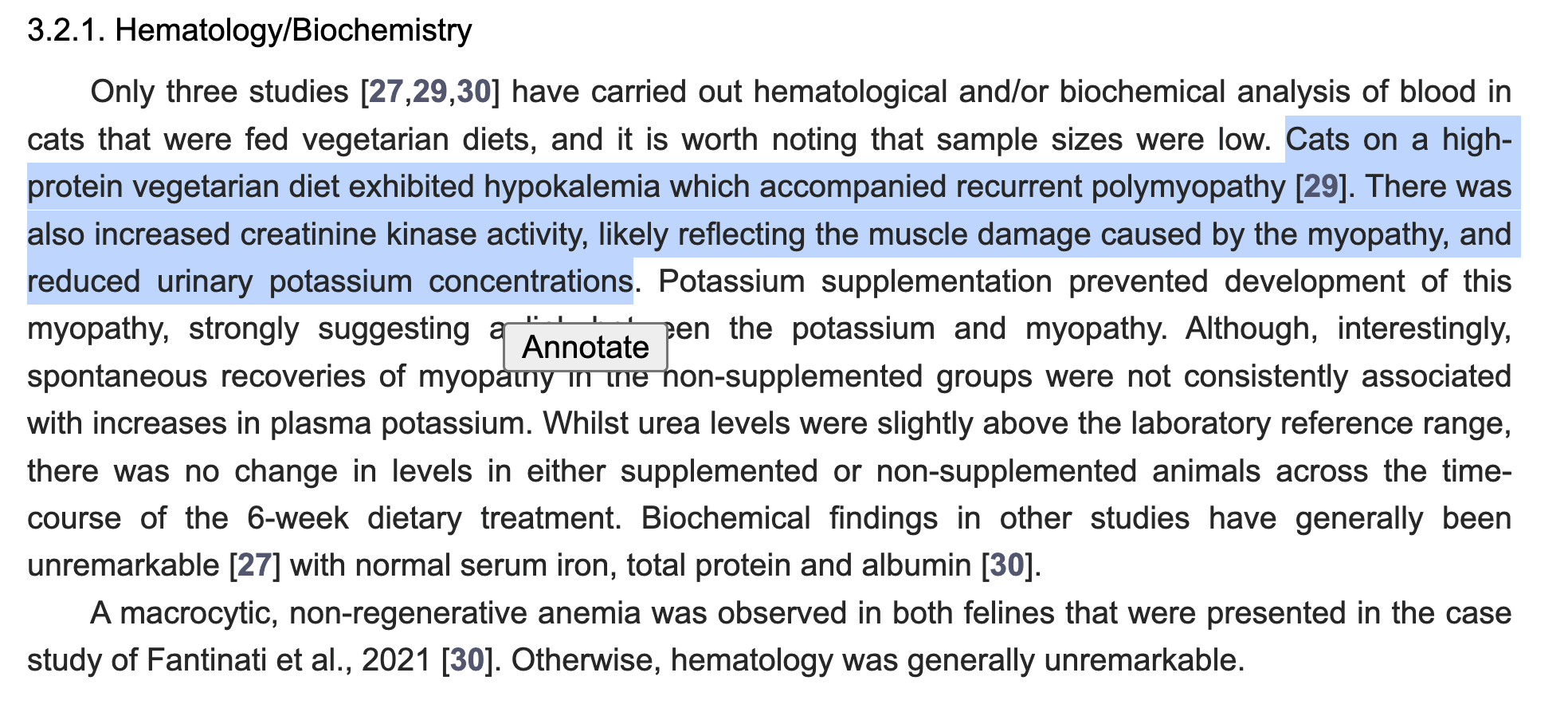 Except, as you pointed out, convincing evidence of major adverse effects resulting from feeding cats vegan diets appear to have actually been observed as stated by the same authors saying it has not been observed. I notice I am confused given I do not think the paper is authored by bad actors.