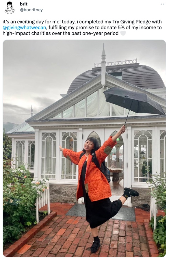If you want to join our movement, take a pledge to donate a portion of your income to highly effective charities today. Committing to a pledge was one of the most powerful things I’ve done.