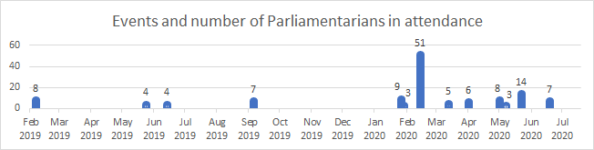 More importantly we have also seen an uptake in engagement with significantly more Parliamentarians attending our events. See the graph below.