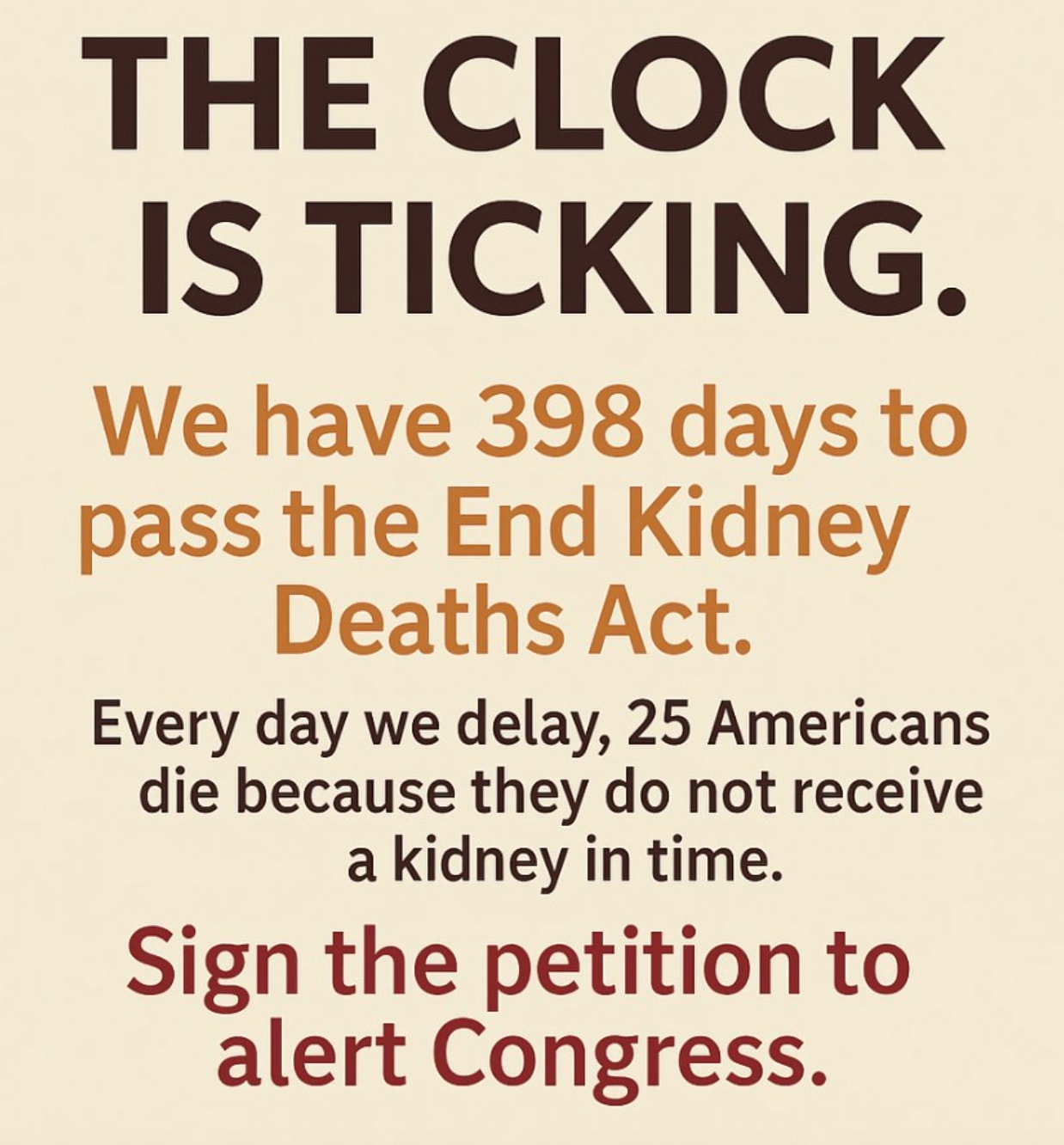 25 people in the USA will die today because the kidney shortage denied them a transplant.