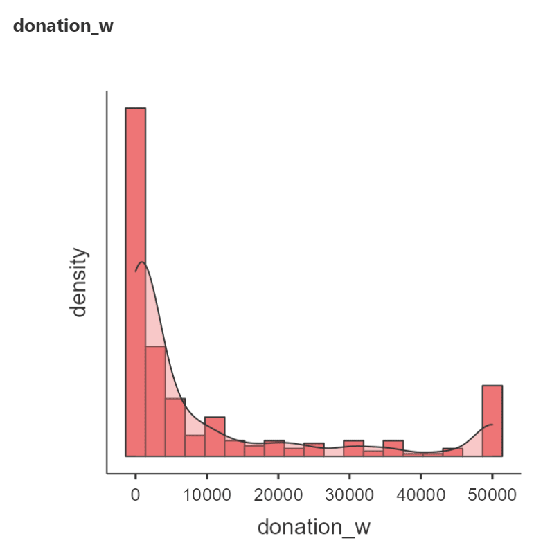 Donation_w shows something like 60% (no y scale so not sure) of population don’t give at all, is that right?
