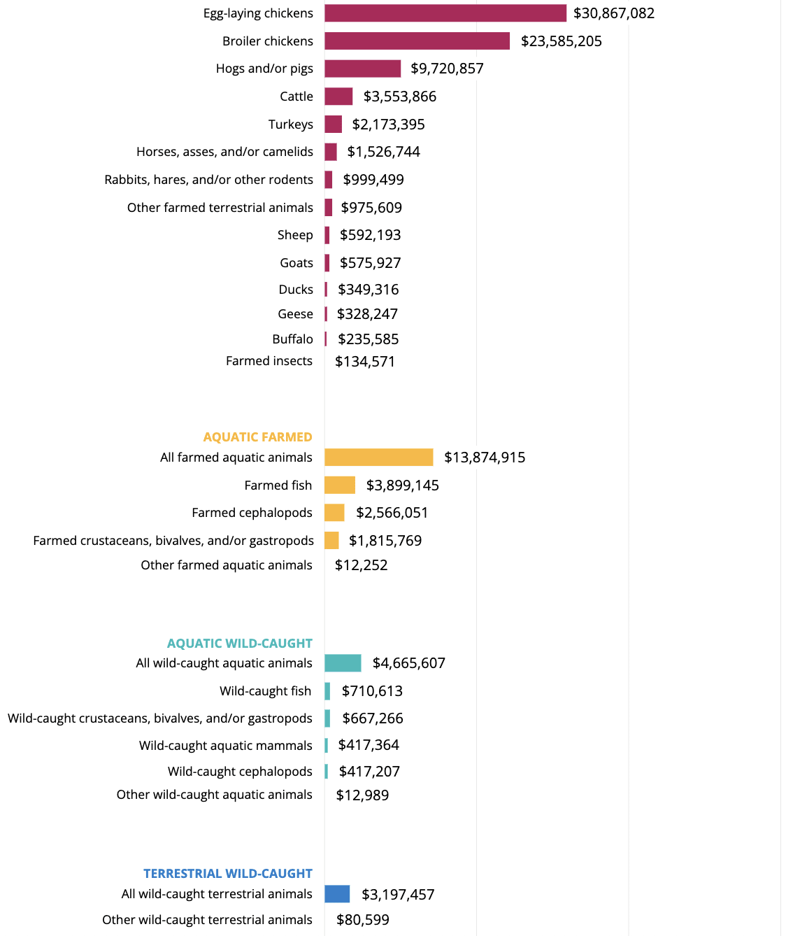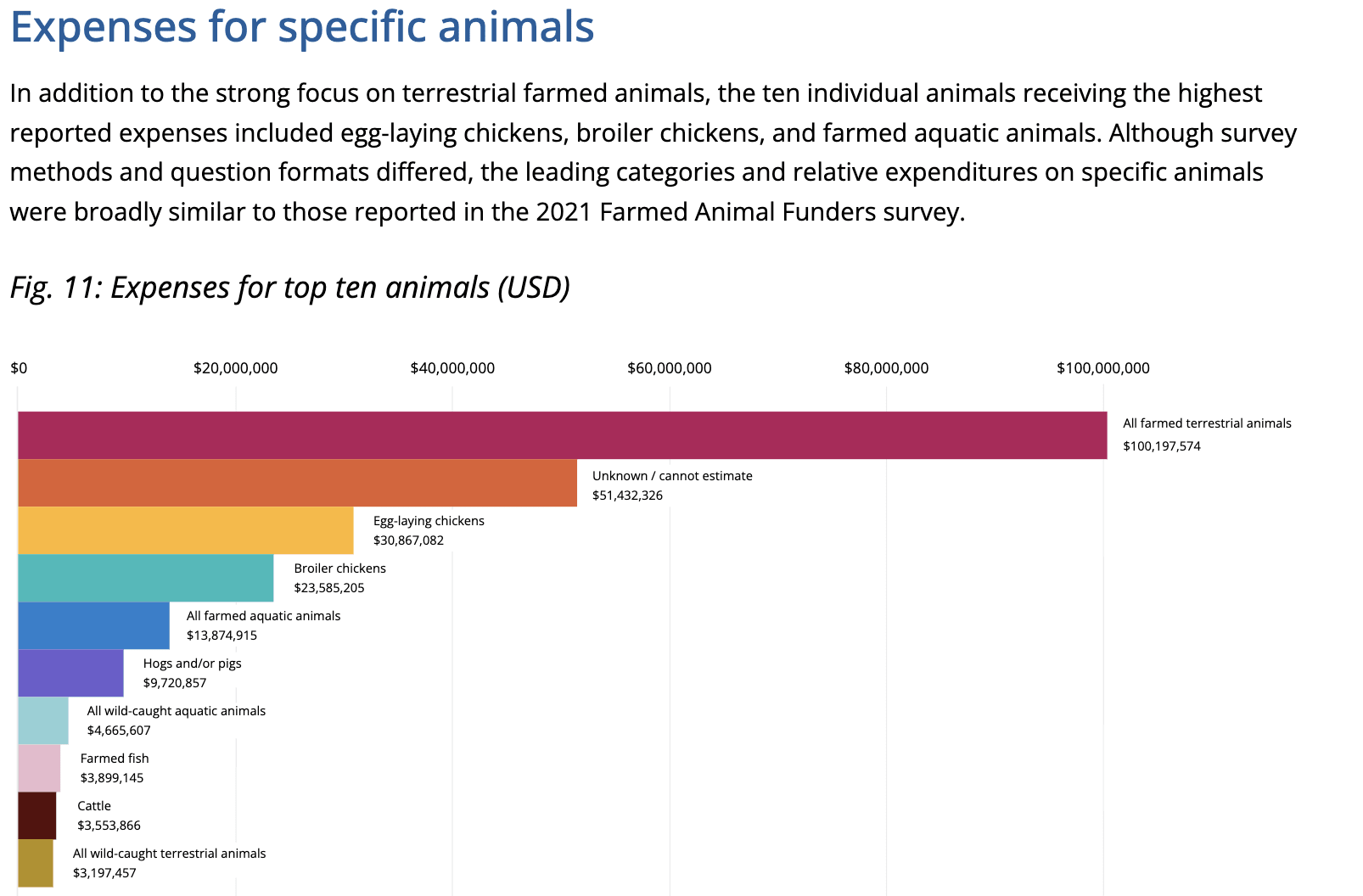 I don’t have any good sense of how this Global North-dominated funding potentially skews priorities, but this drill down by animal category may be a start: