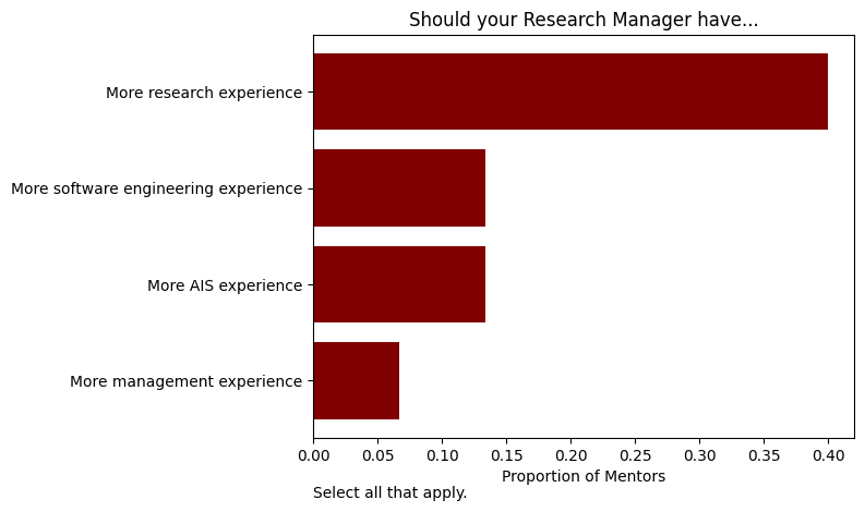 In order to meet scholars’ and mentors’ demonstrated needs, we currently anticipate hiring 3-4 additional Research Managers for the MATS Summer 2024 Program. Given the feedback from mentors on the skills they would most like to see more of in their Research Managers, prior research experience will be a key factor in our hiring decisions.
