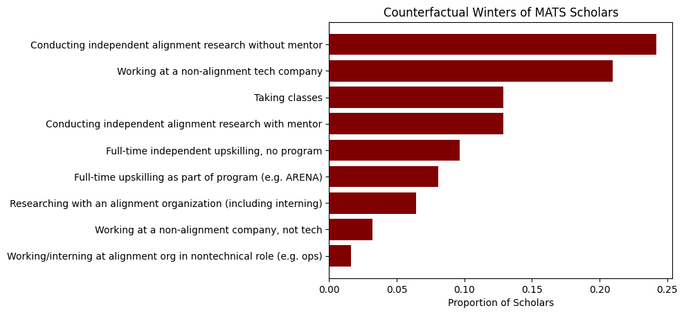 If not for MATS, scholars might have spent their counterfactual winters on the following pursuits (multiple responses allowed):