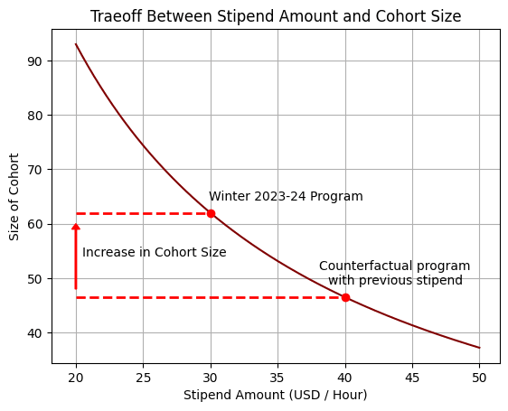 Reducing our scholar stipend from $40/h to $30/h based on alumni feedback;