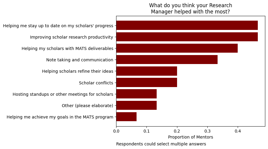 The median scholar reported accomplishing 10% more at MATS because of Research Management and gaining 10 productive hours.
