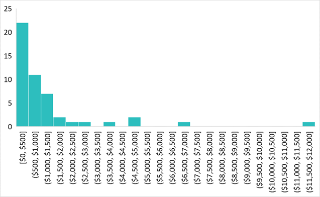 “Assuming you got a grant instead of receiving the most recent four sessions of coaching, how much would you have needed to receive in order to be indifferent between the grant and coaching?” (n=45)
