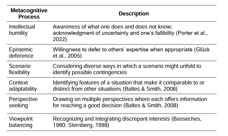 They use examples we discussed earlier to help justify their focus on metacognition. Whilst the Willa example might not initially appear related to metacognition, I suspect that the authors see this as related to “perspective seeking”, one of the six metacognitive processes they highlight.