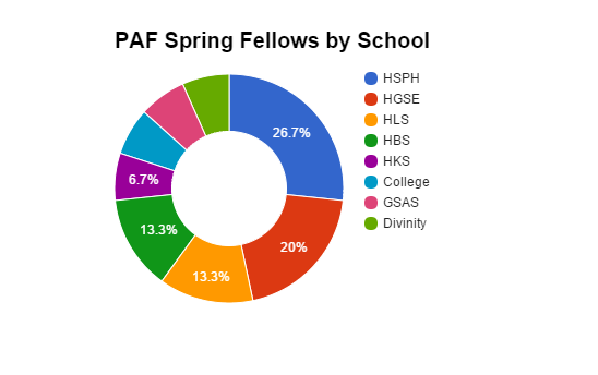 This semester (Spring 2016), we had very strong interest in the program, with 27 applications from across the University. This made the selection process quite competitive, as we ended up with 15 Fellows. The Fellows have diverse backgrounds, with the Chan School of Public health, the Graduate School of Education, the Law School and the Business School representing the largest contingents. We also have a good mix of Masters and PhD candidates.