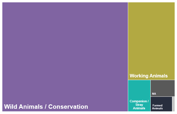 Based on the funding records of 131 funders that we suspected might have funded African animal causes in the past, we created a database of 2,136 records of grants towards animal projects in Africa. This grant data allowed us to base our analysis on real-world data, which provides an important improvement to previous research, which was typically based on self-reported surveys with funders and/or charities.