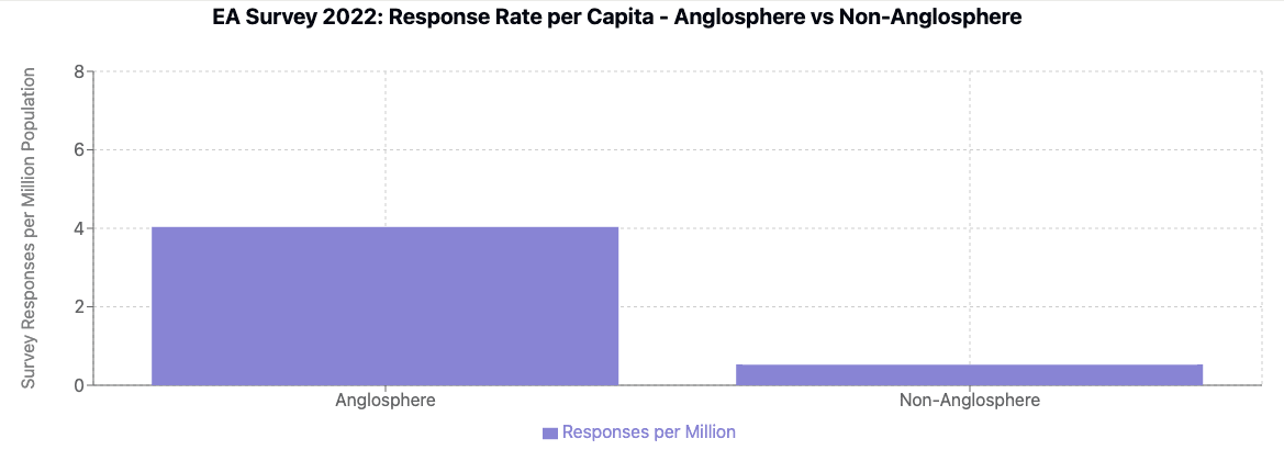 sure, for e.g. China or any large-ish country this works, but as soon as population <1 million or so the range would be very wide—e.g. Iceland presumably has some EA presence but it would be strange to put it at the top without knowing the actual data. If I wanted to spend more time on this I think just asking for the raw data would be best (I am unsure if they would give it to me, and I haven’t tried).