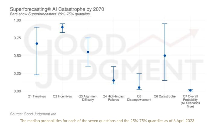 Good Judgment has solicited reviews and forecasts from superforecasters regarding my report “Is power-seeking AI an existential risk,” along with forecasts on three additional questions regarding timelines to AGI, and on one regarding the probability of existential catastrophe from out-of-control AGI.