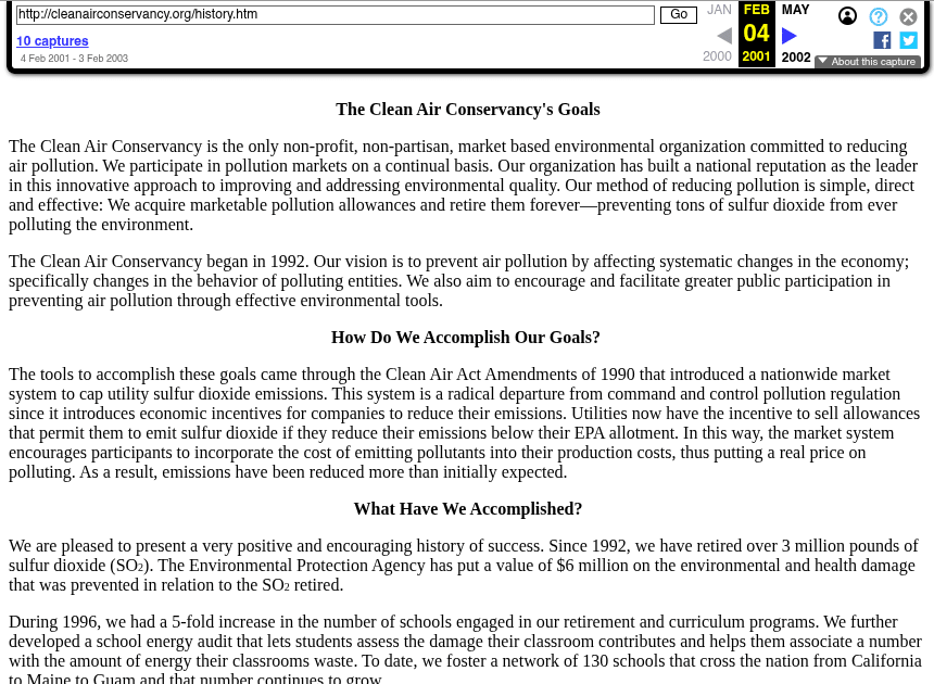 Here’s the Clean Air Conservancy describing allowance retirements in 2001:
