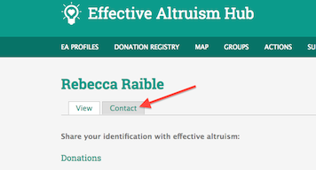 • You can now send messages to a fellow EA directly from that user’s page. Click on a username to get to the user’s page, then click on “Send Message.” The next time that user logs in, the ‘Messages’ link at the top right will indicate an unread message. If you’d like to get someone’s attention with an email instead, you can click the link to their EA Profile by their name if they’ve added this (more below) and then click ‘contact’ at the top of the resulting page (see image below).