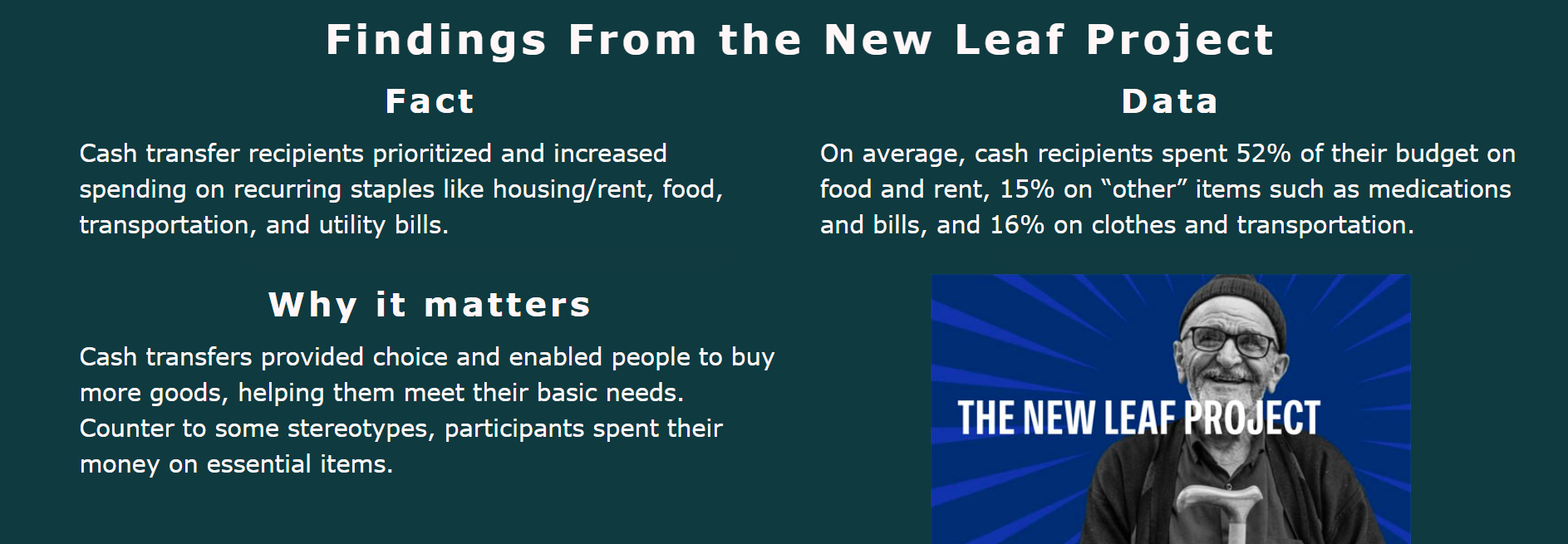 The large-scale interventions we’re currently using (the welfare system and a fractured assortment of low-impact nonprofits) are not effectively reducing poverty. We need to leverage the most effective intervention against poverty that is also highly impactful at any scale.