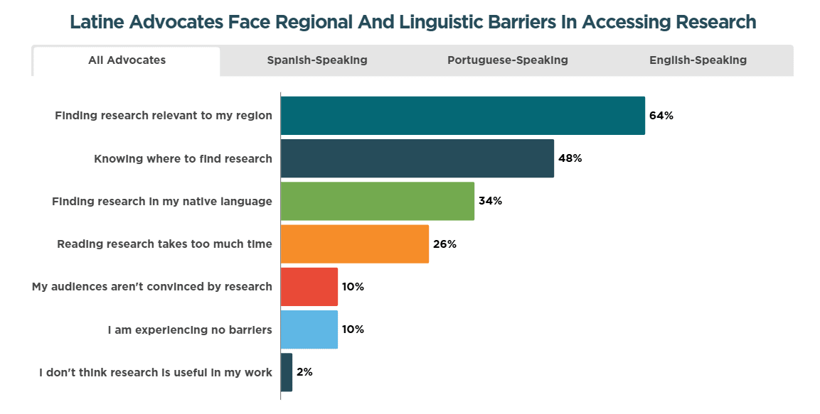 -64% of advocates struggle to find research relevant to their region