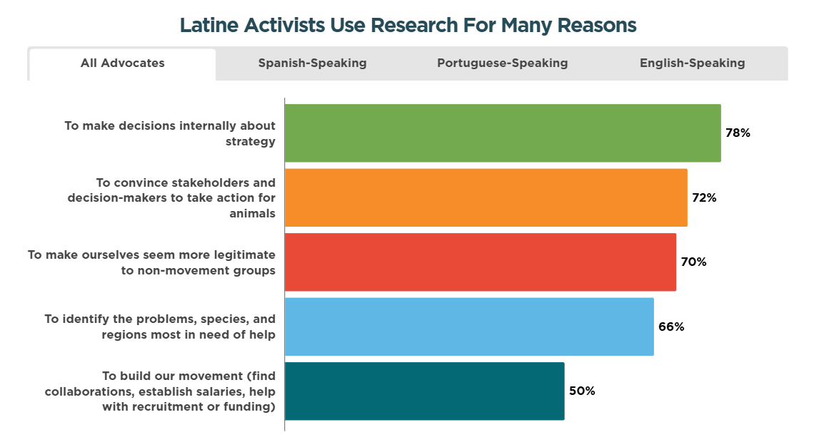 -Latine advocates use research the most to make strategic decisions, and less so for movement building