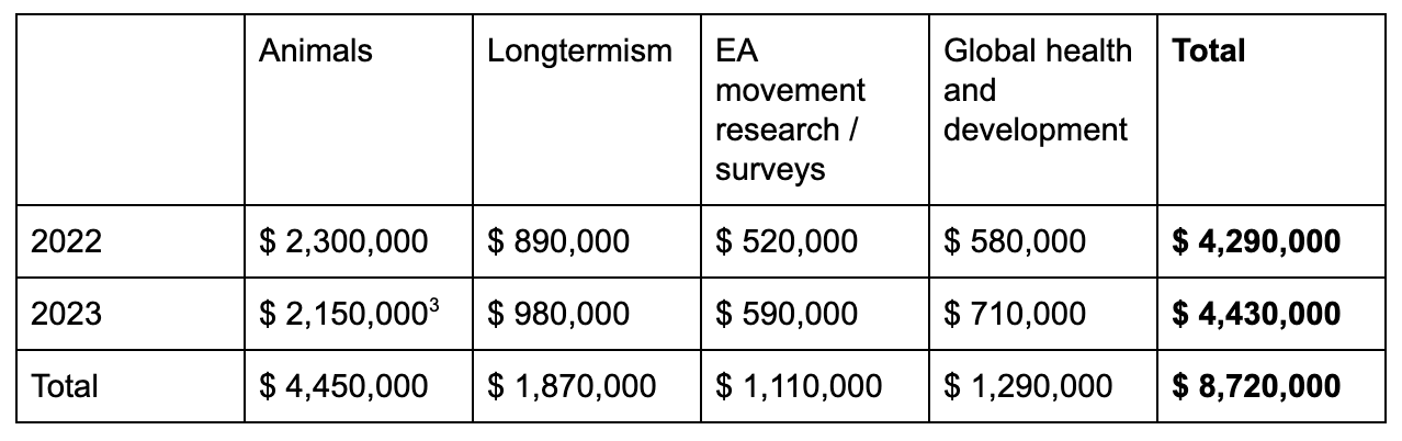 Our goal remains to find competitive giving opportunities that beat GiveWell’s top charities from an expected value / “hits-based” perspective (though perhaps with less rigorously established evidence bases and lower certainty of impact).