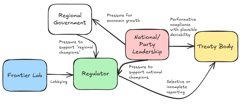 This is a relatively neglected angle. Governance researchers are increasingly recognising the importance of aligning AI governance efforts with state incentives, and there are some good papers on incentives for sharing the benefits of AI and prestige motivations. But I think there’s too much focus in this literature on signatories as abstract geopolitical variables, rather than specific actors with distinctive political structures.