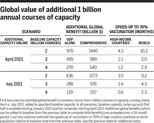 By taking an active role in contracting with vaccine producers ánd their suppliers, vaccine production can be scaled up. This will cost a lot of money, but it is worth it, because billions < trillions.