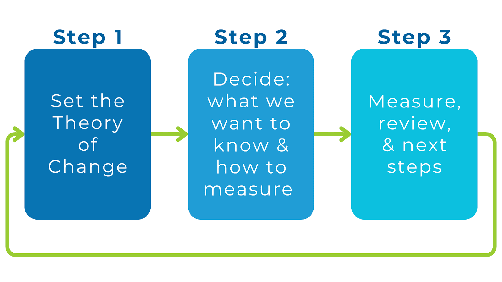 This step closes the loop. You go back to step 1 and refine your Theory of Change based on what you’ve learned.