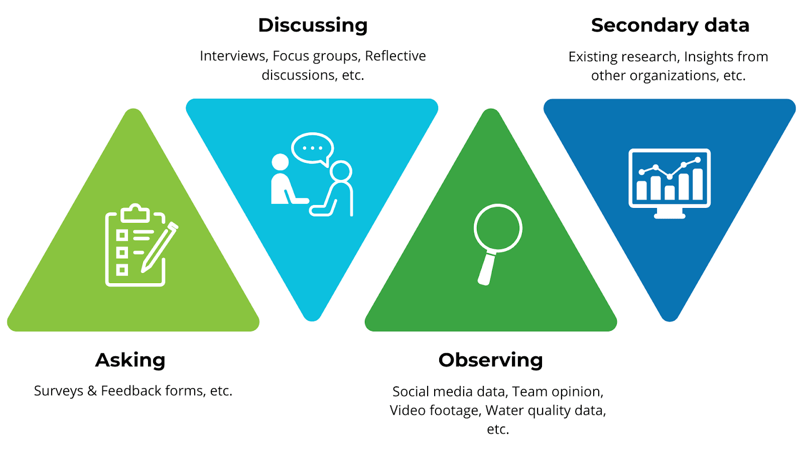 Next, figure out how to measure these. This involves choosing “indicators” (a measurable signal that helps answer your question) and “methods of validation” (a way to collect information on said indicators).