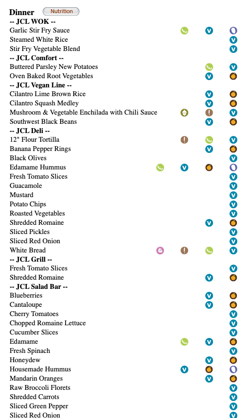 A typical menu at the UT Austin vegan line.