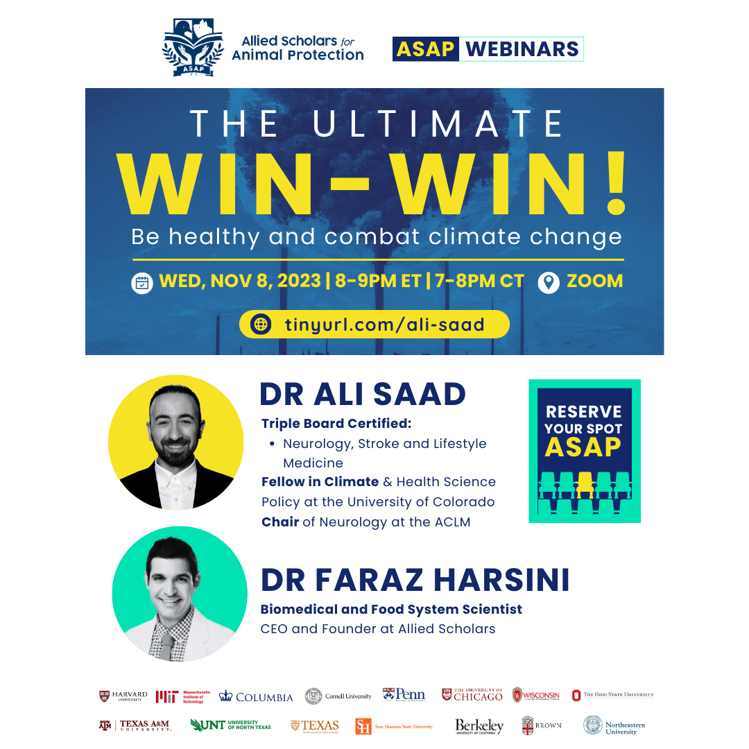 Finally, we hosted a webinar with Dr. Ali Saad on the environmental and public health consequences of animal agriculture, and possible career paths for addressing these problems.